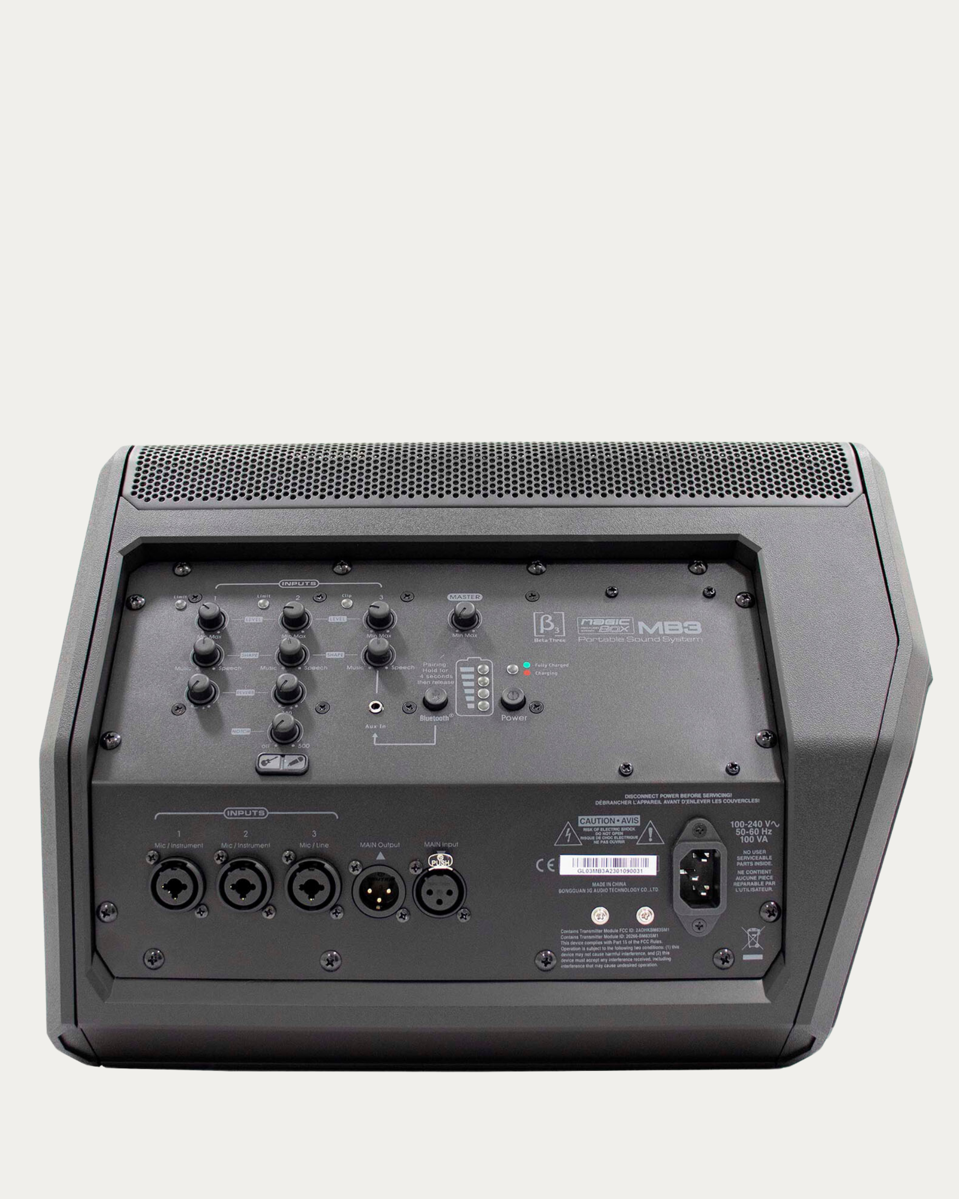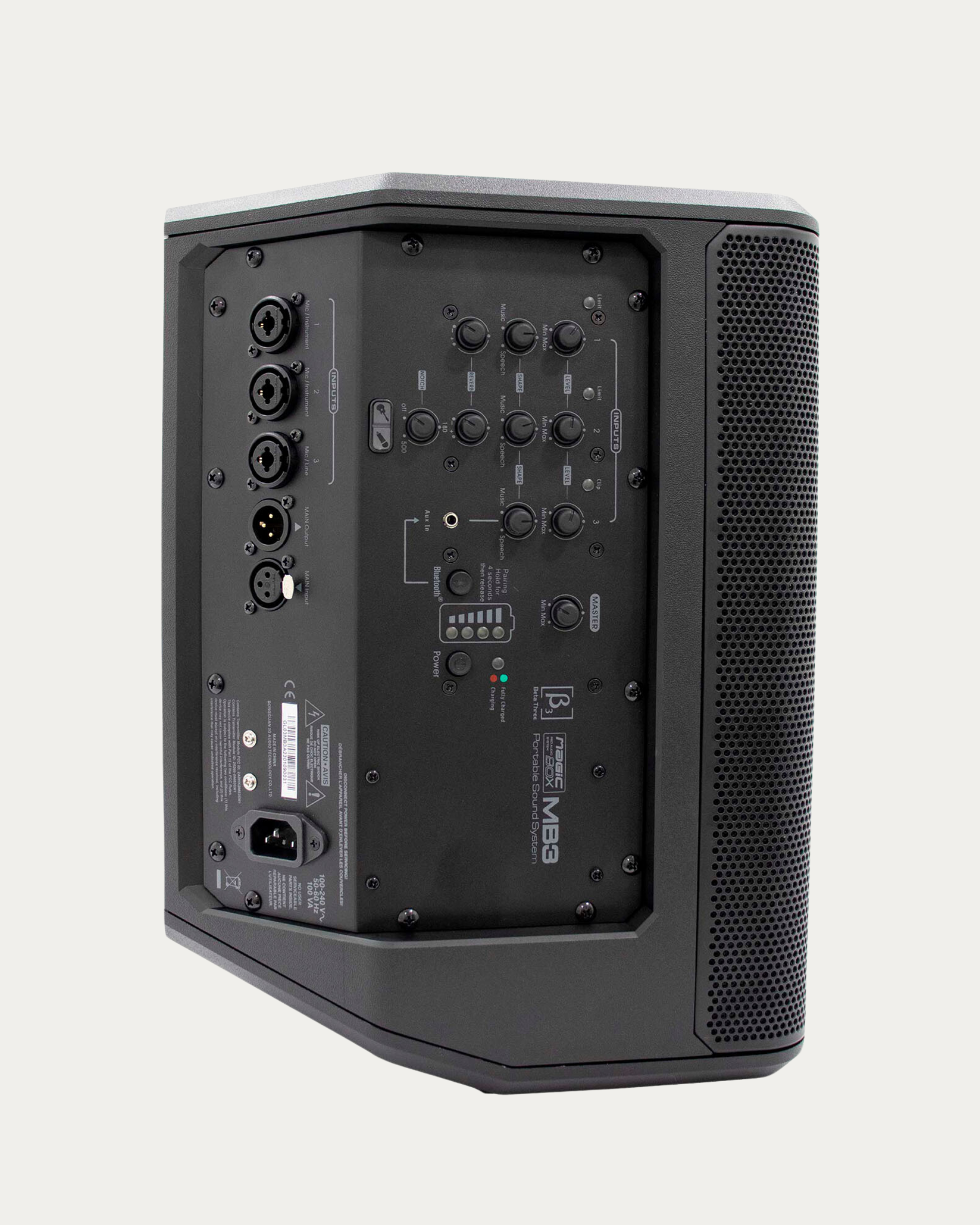 • Cabina activa de tres vías recargable.